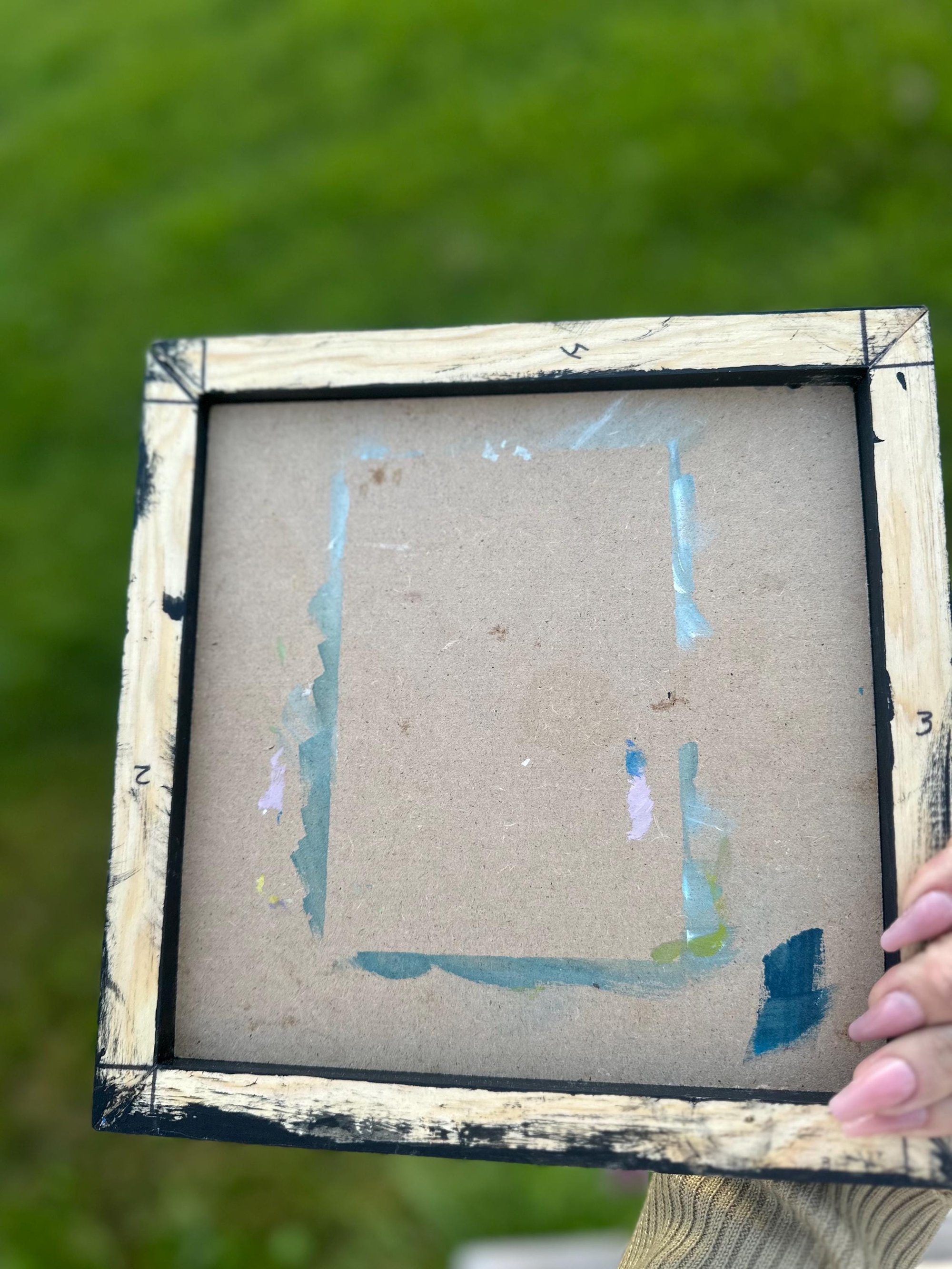 “And you open the heart you start to love that what you can love and just keep expanding you love a tree you love a cat you love a river you love a leaf you love a human go deeper into that love”-Jon Hopkins 9.5 inch x9.5 inch o frame hand made by me