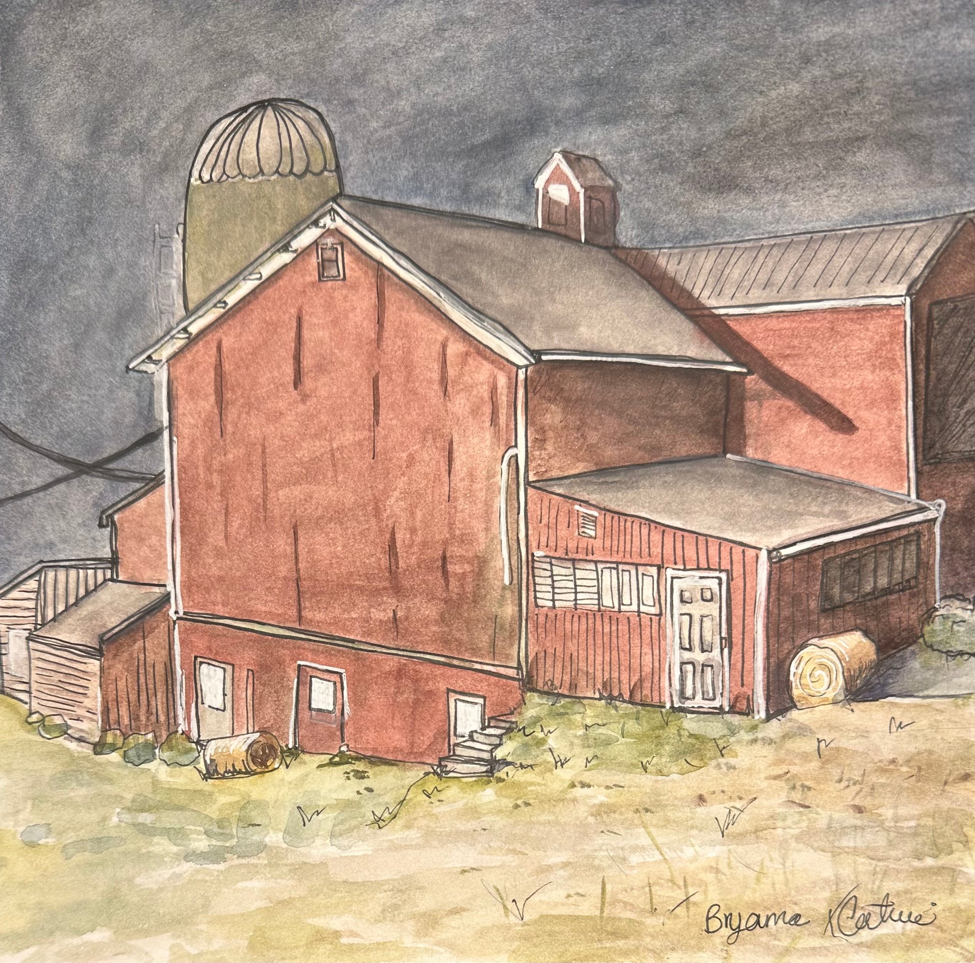 Winter Barn Watercolor Print